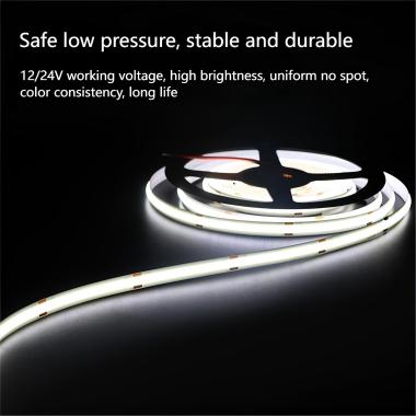 Het wordt aanbevolen om een COB-lichtstrook met een gemiddelde dichtheid van 320-480 lampkralen/meter te kiezen, die uniform licht en matige helderheid heeft, die geschikt is voor woonkamer, slaapkamer en andere scènes.